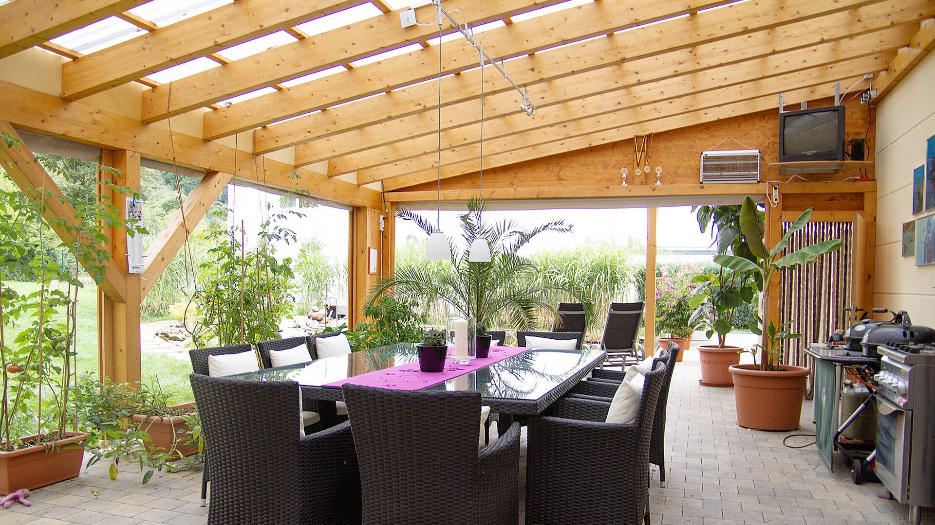 So erfüllt Holz alle Anforderungen an einen zeitgemäßen Werkstoff für den privaten Wohnbau, den Gewerbe-, Hallen- und Objektbau, für Anbauten, Carports, Holzbalkone und Holzterrassen, für Dachstühle und Dachsanierungen. Dabei sieht Holz einfach natürlich gut aus – ein Leben lang und manchmal sogar noch länger.